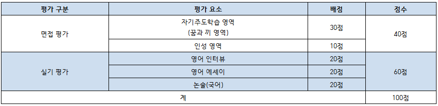 면접(40점) = 자기주도학습영역(30점) + 인성영역(10점)
