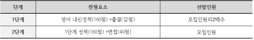 < 1단계 > + < 2단계 > 합산총점 (200 점) 순으로 정원 선발