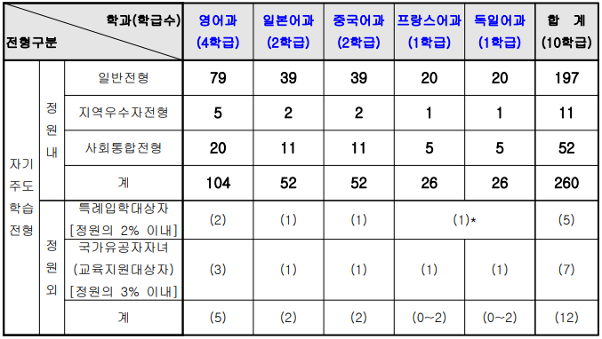일반 전형 (197 명) + 지역우수자전형(11 명) + 사회통합 전형 (52 명)