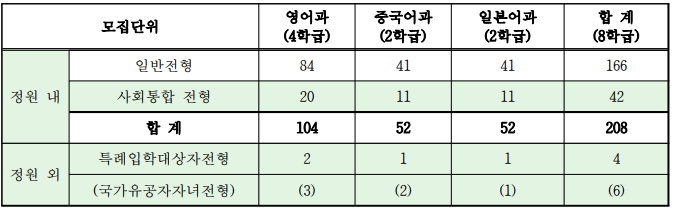 일반 전형 (166 명) + 사회통합 전형 (42 명)