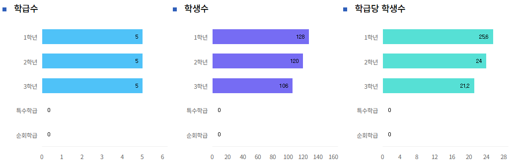 각 학년 영어중국어과 2학급, 영어일본어과, 중국어영어과, 일본어영어과 각 1학급 총 5학급으로 구성