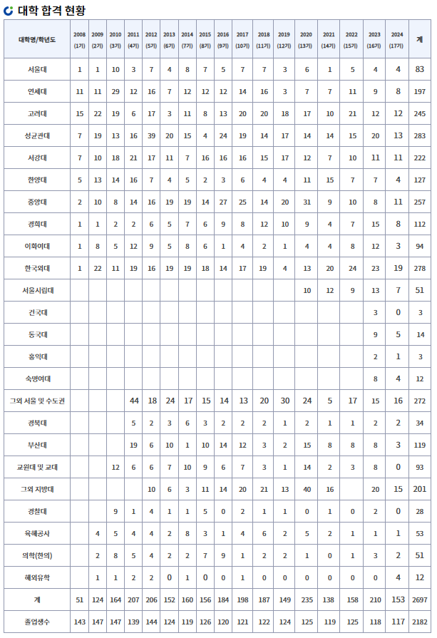 - 전년도 경쟁률: 1.43대 1 (125명 모집, 179명 지원)