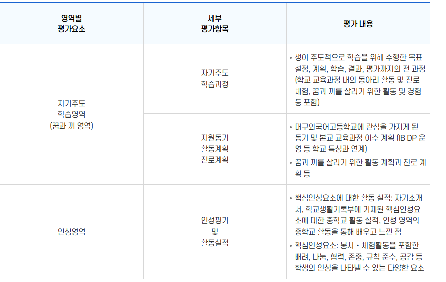 면접(40점) = 자기주도학습영역(꿈과 끼 영역) + 인성영역