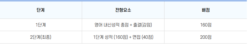 < 2단계 > 1단계 총점(160 점) + 면접(40 점)