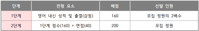 1단계 총점(160 점) + 면접점수(40 점)