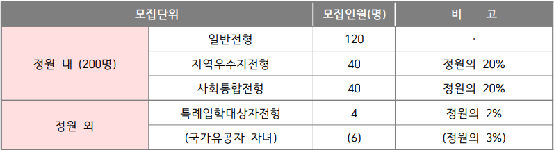 일반 전형 (120 명) + 지역우수자전형(40 명) + 사외통합전형(40 명)