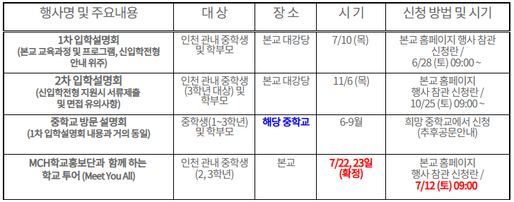 입학을 희망하는 학생들은 충분한 준비와 계획을 통해 도전하시기 바라며, 자세한 정보는 학교 홈페이지(https://mch.icehs.kr/)를 참고하시기 바랍니다.