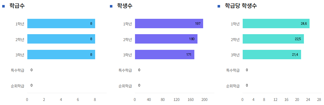 학급당 24 명 x 8 학급, 192 명 모집