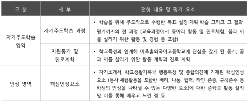 면접(40점) = 자기주도학습영역(30) + 인성영역(10)