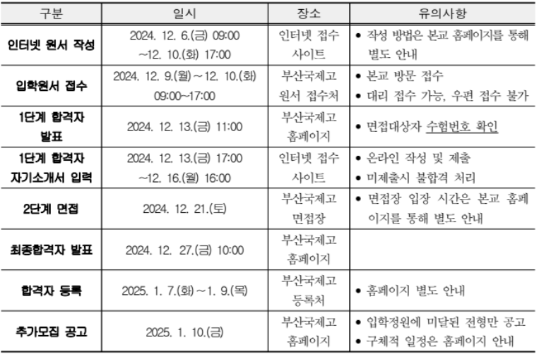 ※ 정확한 정보는 반드시 부산국제고등학교 공식 홈페이지( http://www.gukje.hs.kr )를 확인하시기 바랍니다.