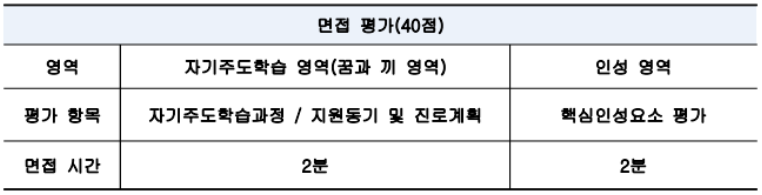 면접(40점) = 자기주도학습영역(25점) + 인성영역(15점)