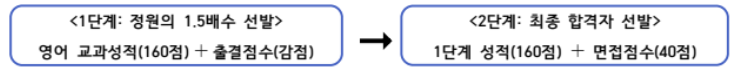 1단계 총점(160 점) + 면접점수(40 점)