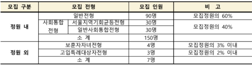 사회통합전형 : 서울지역 기회균등(30명) + 일반사회통합 (30 명)