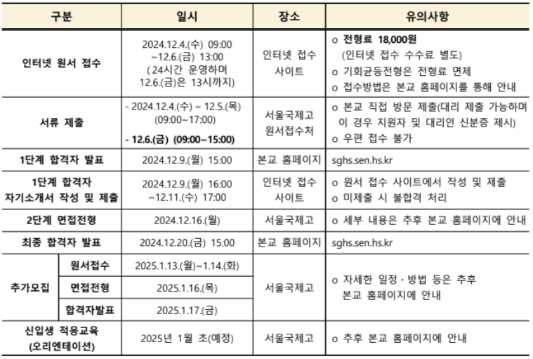 ※ 정확한 정보는 반드시 서울국제고등학교 공식 홈페이지( http://sghs.sen.hs.kr )를 확인하시기 바랍니다.