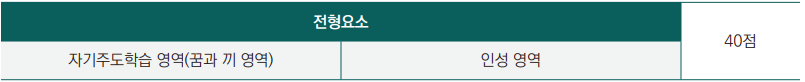 - 본인의 인성(배려, 나눔, 협력, 타인 존중, 규칙 준수 등)을 나타낼 수 있는 개인적 경험 및 이를 통해 배우고 느낀 점을 구체적으로 기술