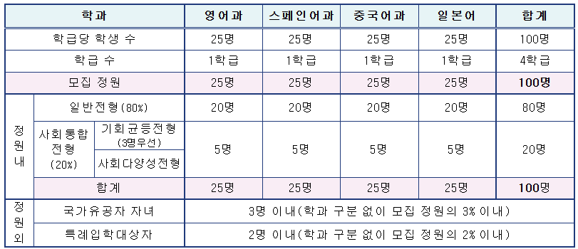 제주외고는 학급당 25명씩 4학급, 100명을 모집