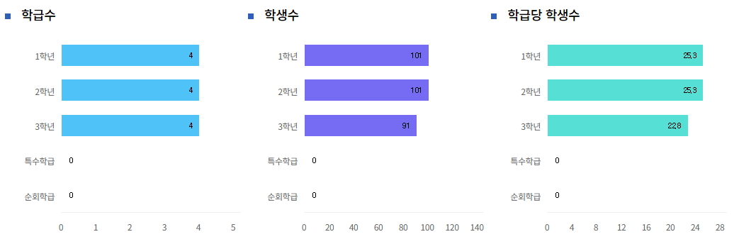 전교생 수는 293명 (남 82명 , 여 211명)